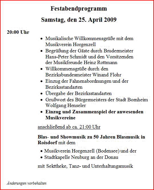 Festzelt der Musikfreunde? (Änderungen vorbehalten).