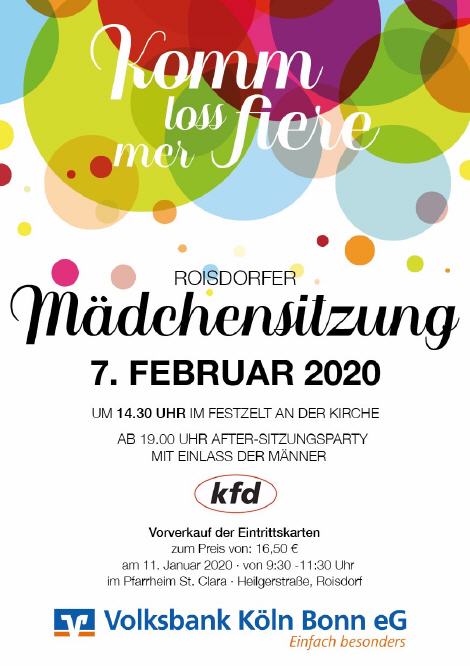 Am Freitag 07. Februar 2020 'Mädchensitzung' der kath. Frauengemeinschaft Beginn 14:30 Uhr Einlass ist ab 13.30 Uhr.
