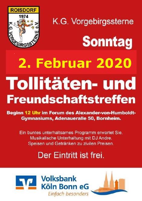 Tollitaeten und Freundschaftstreffen der KG Vorgebirgssterne e.V. Beginn 12:00 Uhr Ort: Forum Alexander von Humboldt Gymnasium