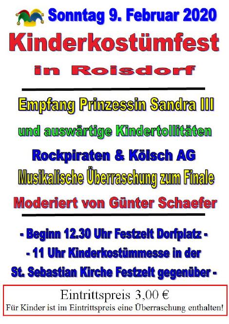 Beginn: 11:00 Uhr Kinderkostümmesse in der kath. Pfarrkirche anschließend Kinderkostümfest des Ortsausschuss Roisdorf Beginn 12:30 Uhr