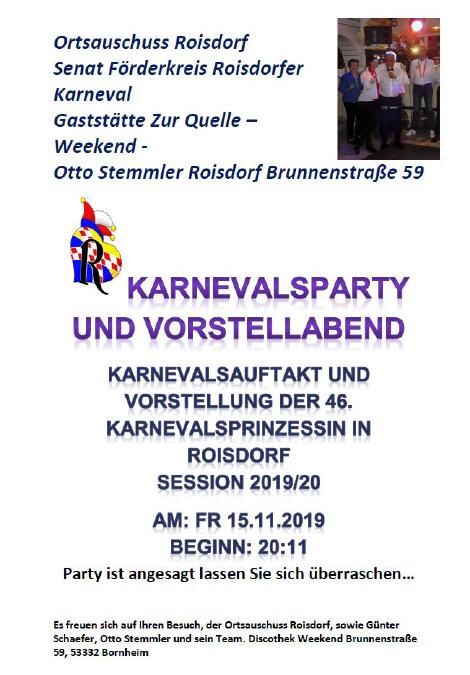 Im Rahmen des Karnevalsauftakt Roisdorfer Karneval wurde die neue Karnevalsprinzessin der Session 2019/20 durch den Ortsauschussvorsitzenden Wolfgang Mertgen vorgestellt.