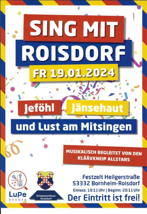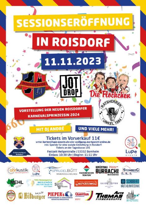 Ein Höhepunkt dieser Veranstaltung ist die Vorstellung der 48. Roisdorfer Karnevalsprinzessin mit Gefolge für die Session2023/24.
