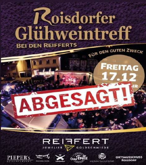 Schweren Herzen, hat die Familie Juweliere Reiffert den traditionellen Roisdorfer Glühweintreff auch in diesem Jahr abgesagt. Wir stehen, wenn es auch schwerfällt, hinter dieser Entscheidung.
