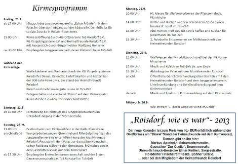Weitere Details entnehmen Sie dem Kirmesprogramm: