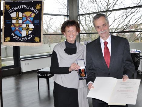 In einem würdevollen Rahmen im Bornheimer Rathaussaal, liebevoll gestaltet von den Heimatfreunden Roisdorf, wurde Dr. Karl-Ernst Gierlich heute durch die stellv. Landrätin Notburga Kunert die Verdienstmedaille des Verdienstordens der Bundesrepublik Deutschland überreicht.